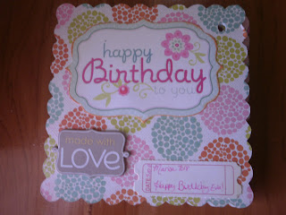 My neice is turning one on July 10th and I was lucky enough to be able to hitch a ride to N.D. with my dad. So I made her a little memory book. I started with a plain chipboard album, then traced and cut out pieces of patterned paper adhered them to the chipboard. Then I embellished and left space for some small pictures. I had such a blast working on girly pages and with girly papers. So here it is in all its glory.